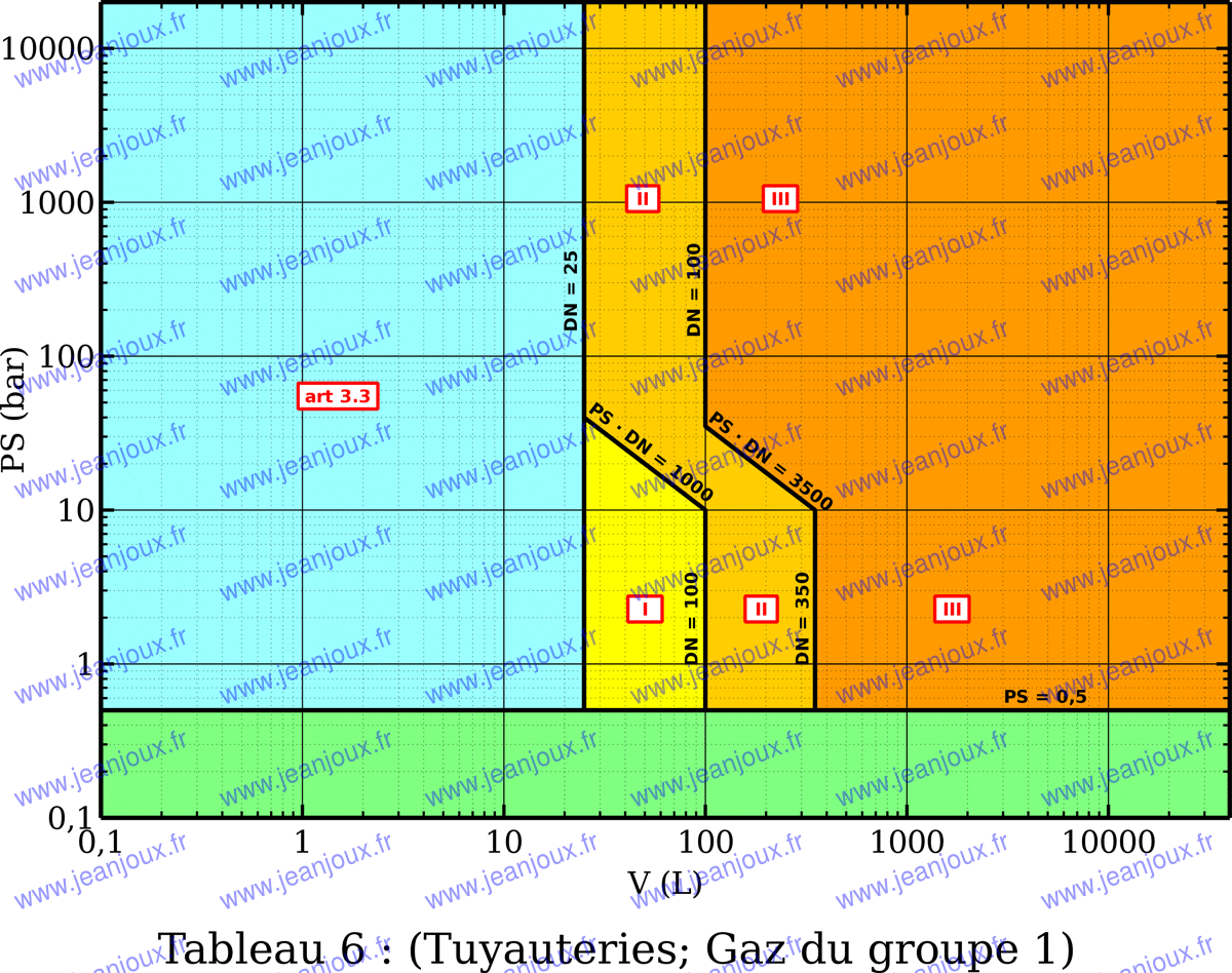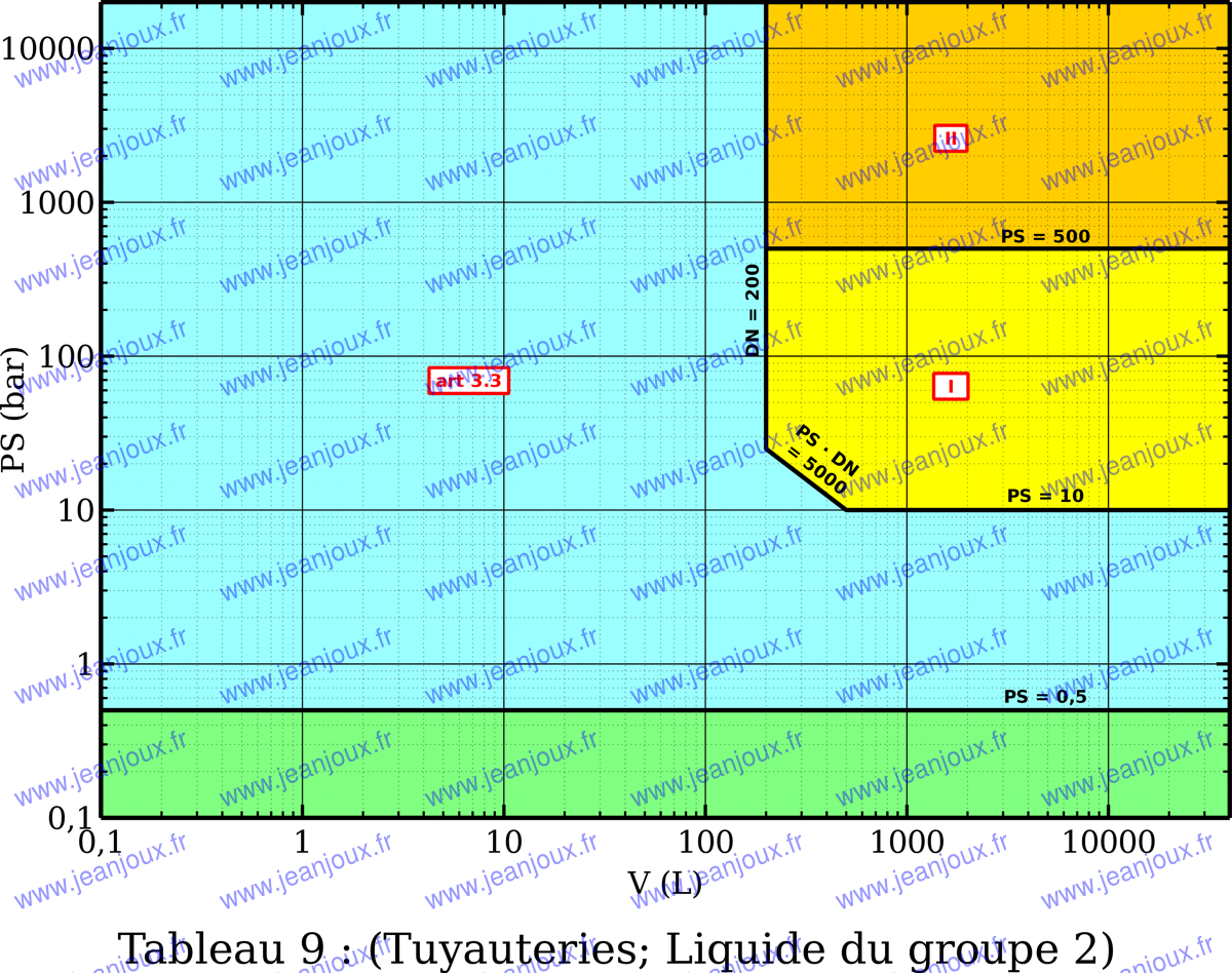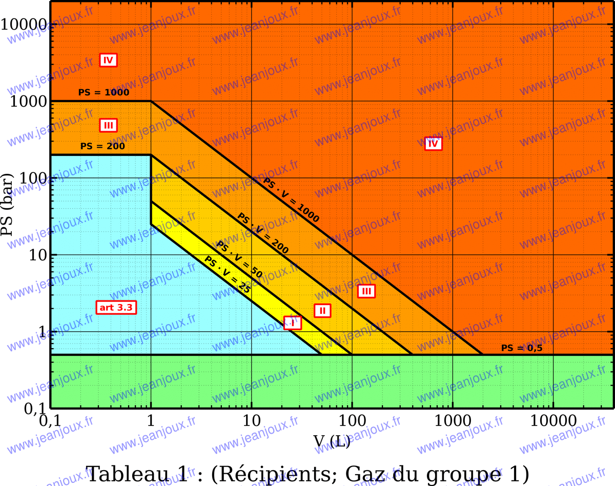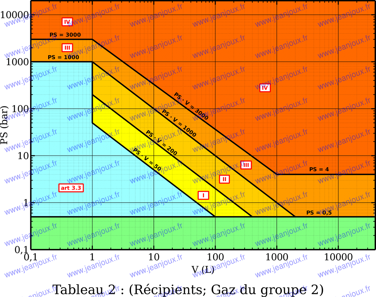Ces tableaux sont tirés de la directive des équipements sous pression 97/23/CE et permettent la classification des ESP en fonctions de leur dimension, de leur contenu et de leur pression interne.