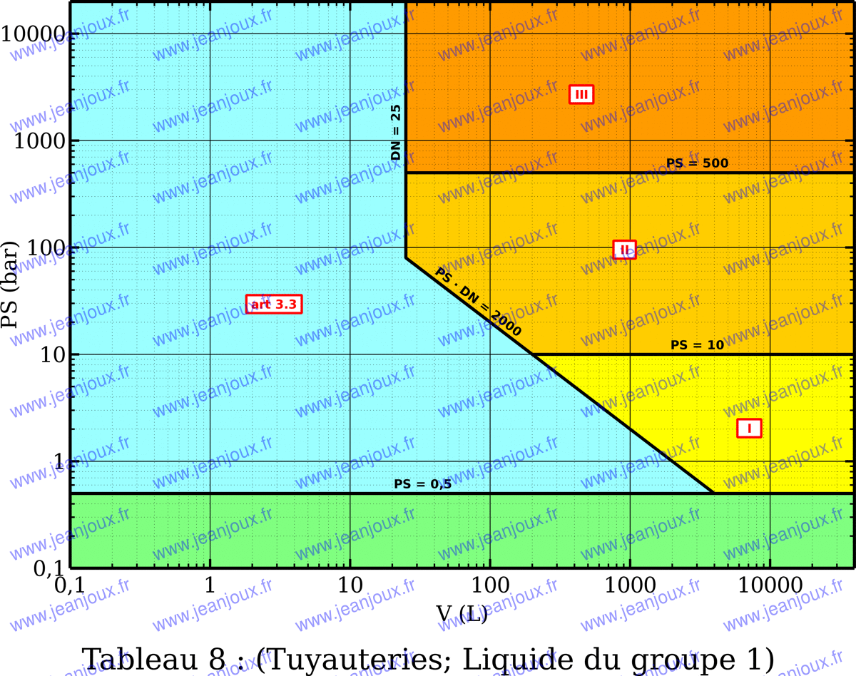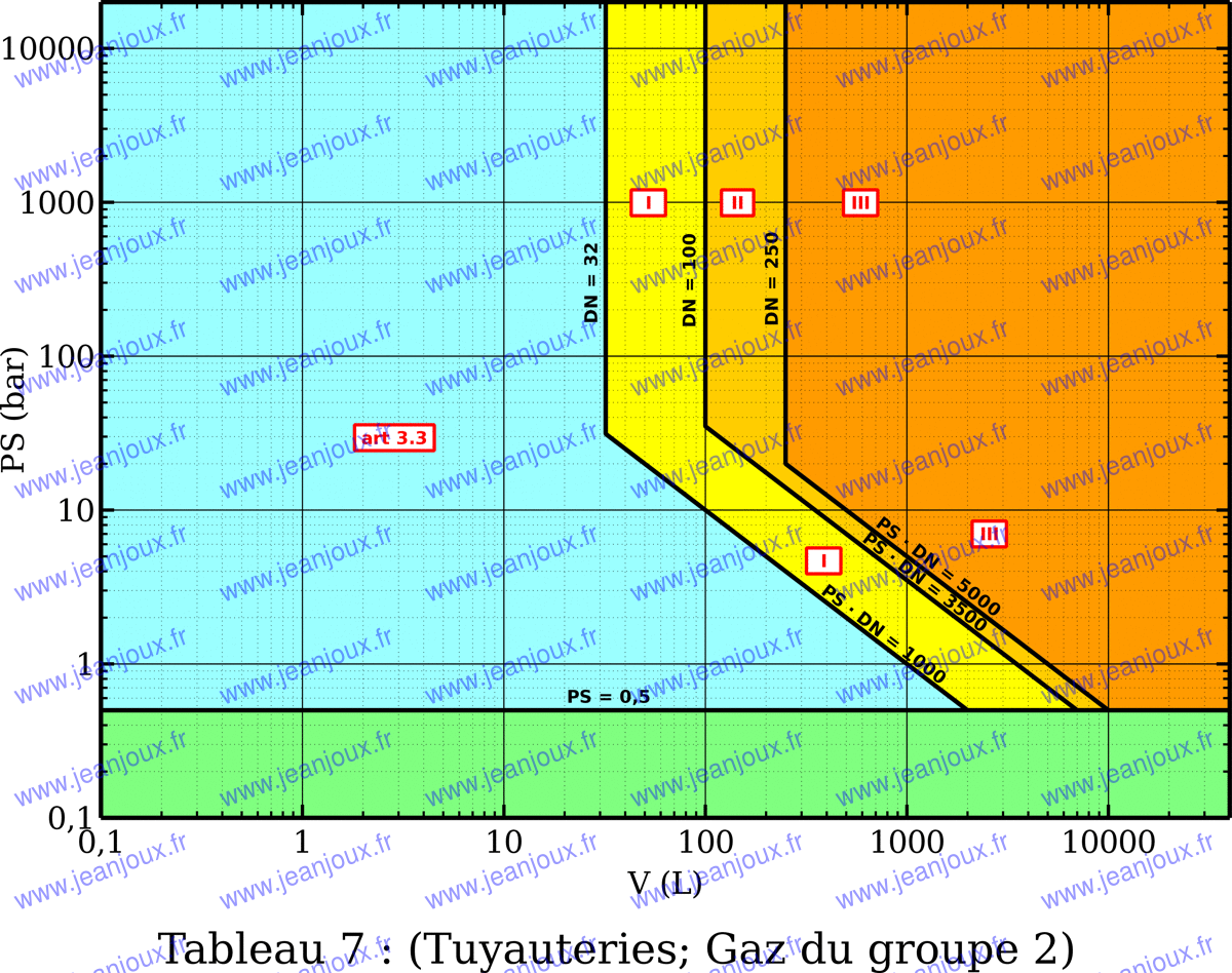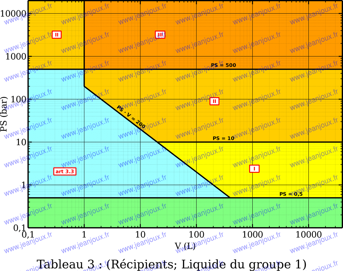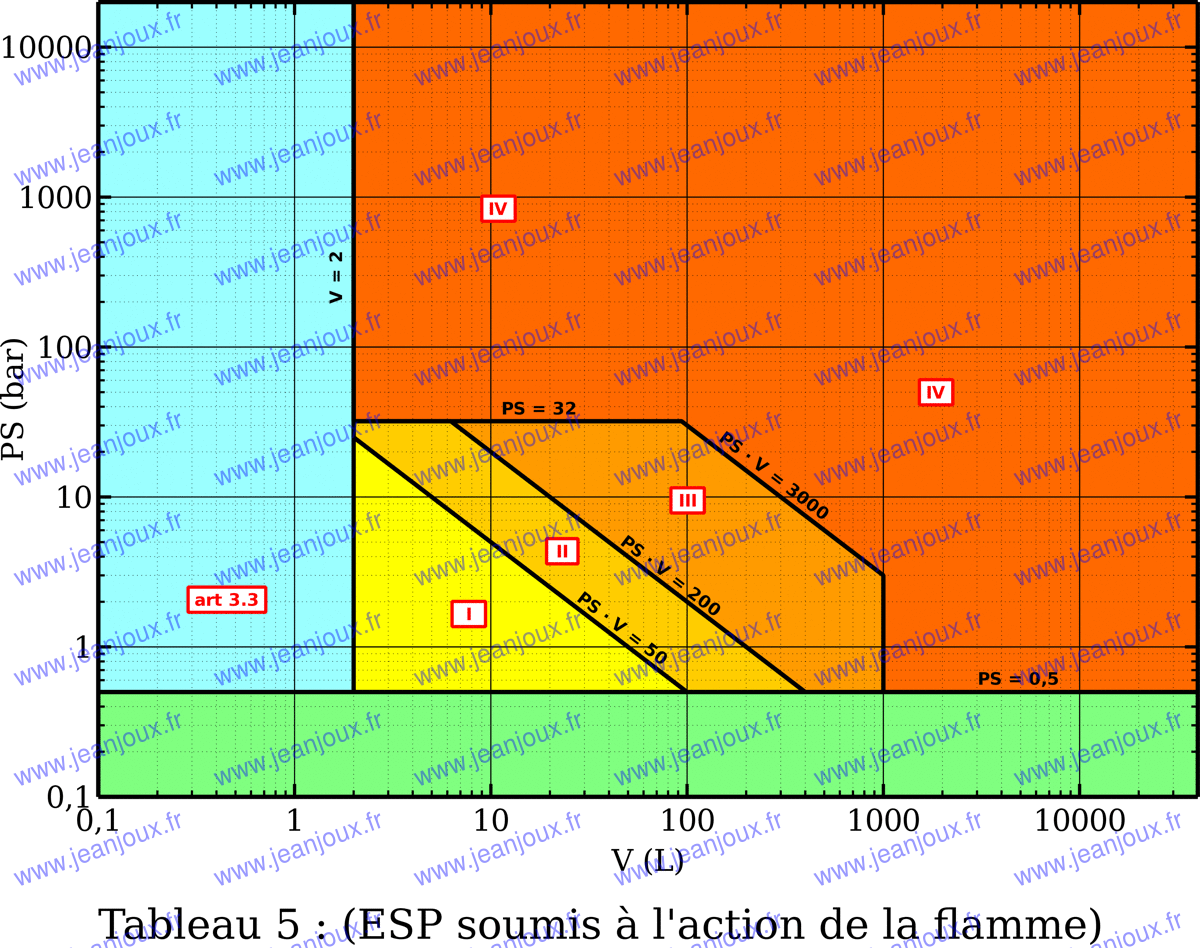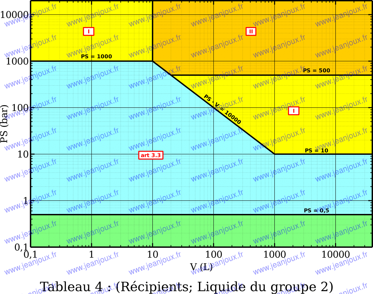 Ces tableaux sont tirés de la directive des équipements sous pression 97/23/CE et permettent la classification des ESP en fonctions de leur dimension, de leur contenu et de leur pression interne.